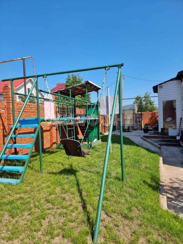 Земельный участок с плодоносящими деревьями и кустарниками (яблони, клубника и др. ) , имеется забор, хозяйственные постройки (сараи, теплица, беседка, баня и спортивный комплекс) .