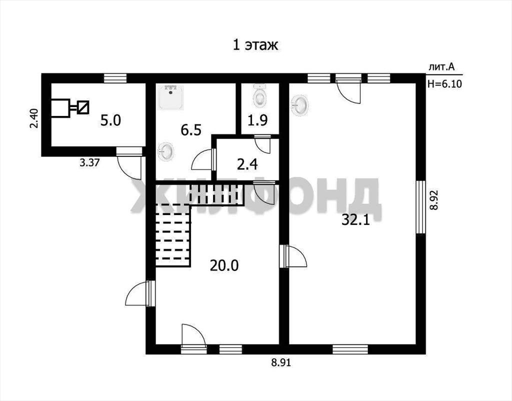 Hа первом этаже : большая гостиная-кухня ( 32 кв. м) с выходом на просторную веранду и участок. , холл ( 20 кв. м) с выходом в гараж и раздельный с. узел.