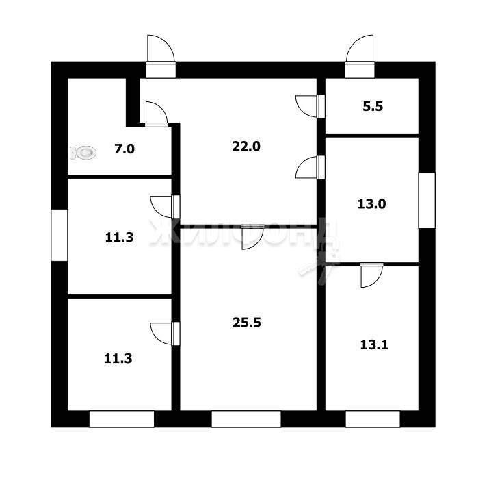 В доме 4 комнаты, просторная кухня, совмещенный с.у.