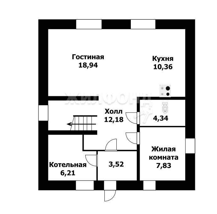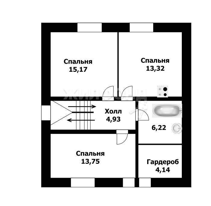 На первом этаже большая кухня гостиная и комната, на втором этаже 3 просторных комнаты.