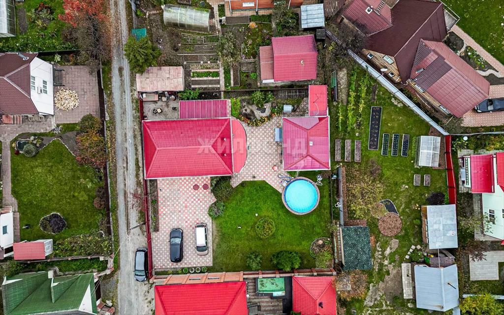 На территории также имеются: парковка, гостевой дом, баня, мангальная зона, газон с местом под бассейн, хозпостройки и металлический гараж (который при желание можно убрать) . Облагороженная придомовая территория, не большой но полноценно эксплуатируемый огород и сад, в котором растут плодоносящие: малина, ранетка, жимолость, клубника, также есть теплица.