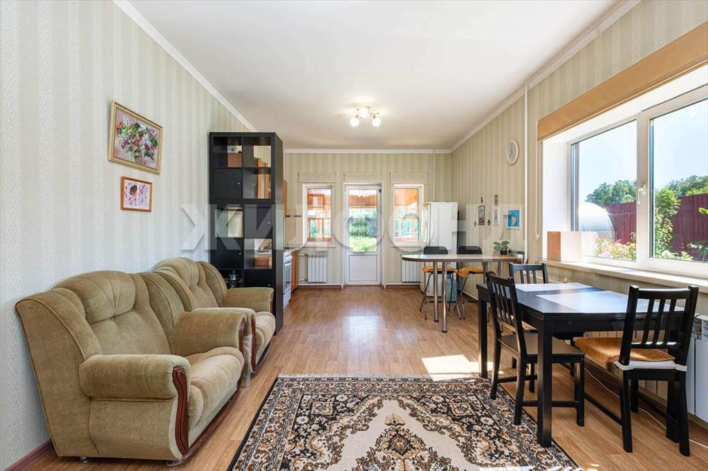 Hа первом этаже : большая гостиная-кухня ( 32 кв. м) с выходом на просторную веранду и участок. , холл ( 20 кв. м) с выходом в гараж и раздельный с. узел.