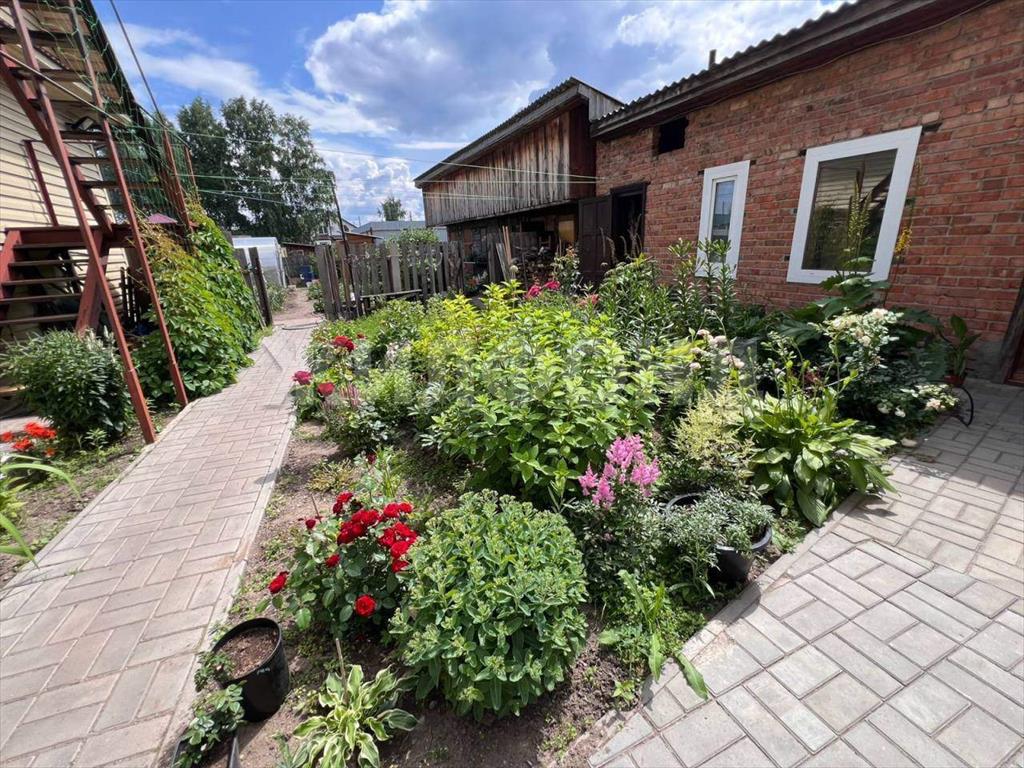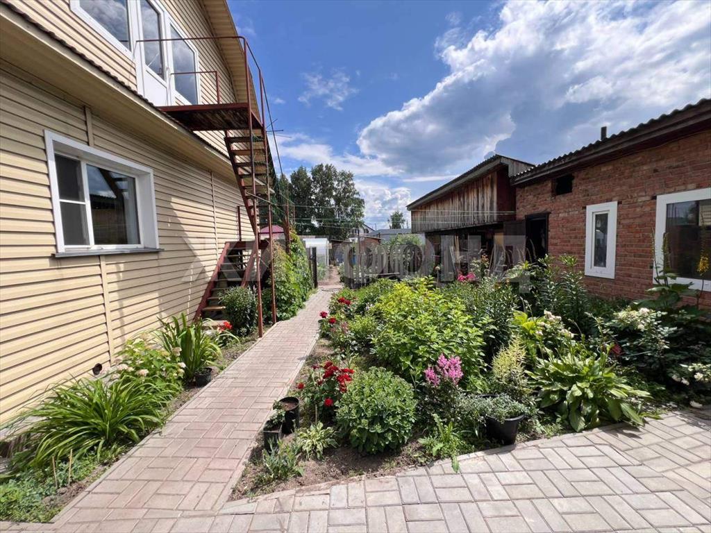 На ухоженном участке располагается большой гараж на две - три машины, баня , хоз. постройки (дровенник, углярка, овощехранилище) . Просторный двор. В огороде теплица, плодово-ягодные деревья, цветы, полив проведен на весь участок. Освещение всей территории.