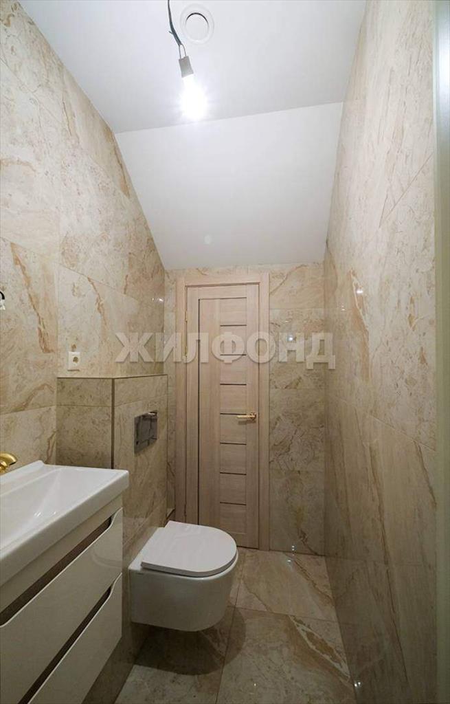 На втором этаже просторная спальня, детская комната, гардеробная. На полу качественная ПВХ плитка. Два санузла в современном кафеле, унитазы - инсталляция. Двери межкомнатные красивые дорогие, на стенах обои, потолки натяжные с подсветкой.