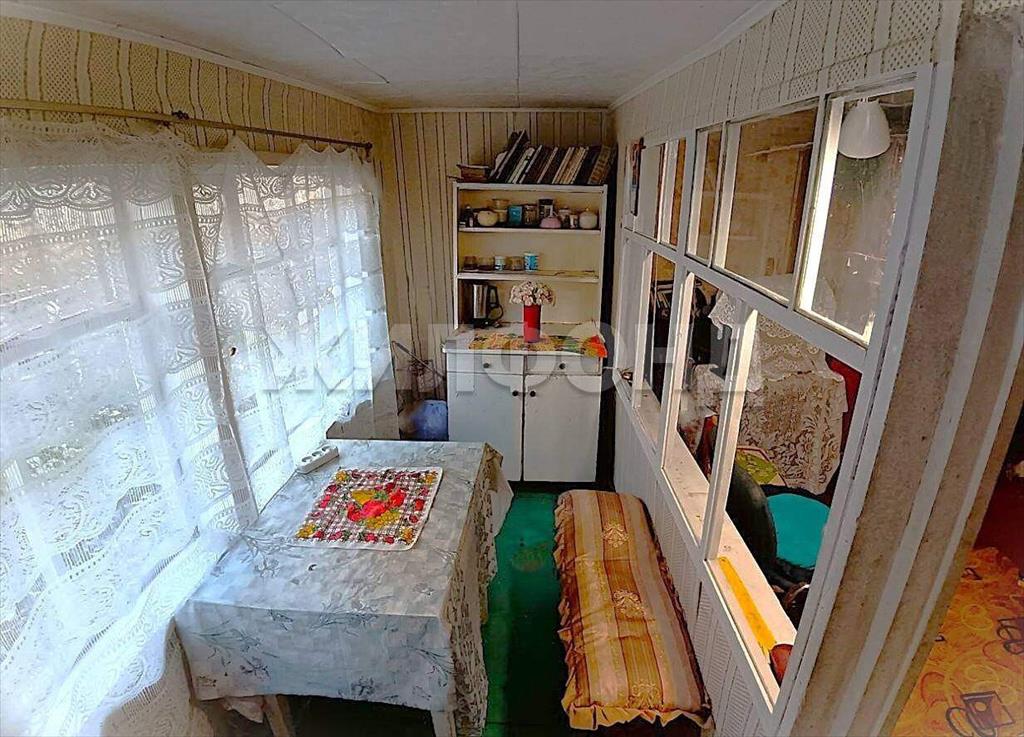 На участке небольшой кирпичный домик с пристроенной верандой (на 1-ом этаже кухня+комната, на деревянном мансардном комната) , бревенчатая баня, туалет, хозблок, теплица. Постройки требуют капитального внимания или замены. Крыша домика отремонтирована. На участке имеются емкости для воды.