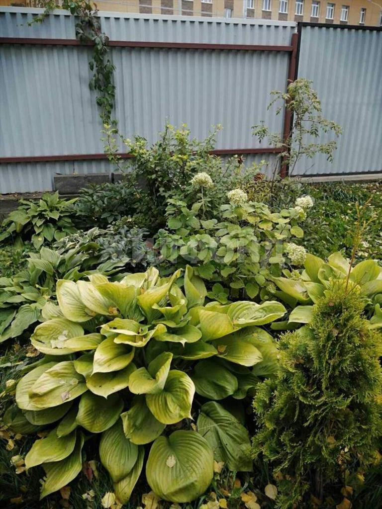 На территории посадки из плодово-ягодных культур и многолетних декоративных кустарников, цветов.