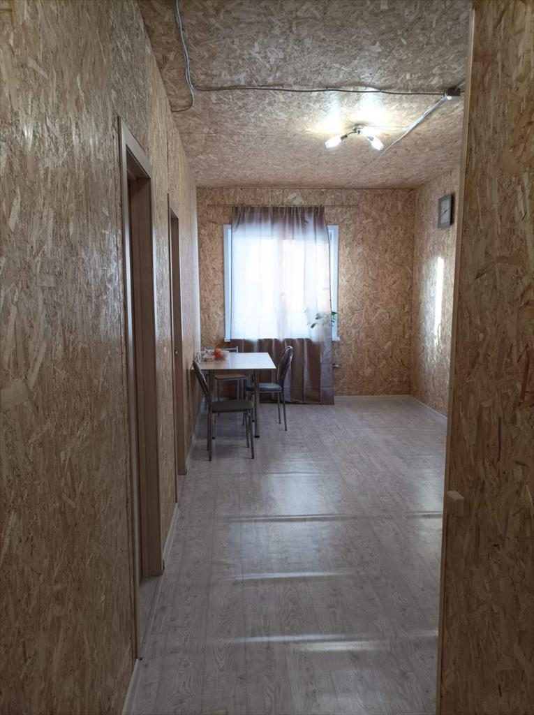 Дом 50 квадратов жилого помещения. 2 комнаты и кухня-гостиная.