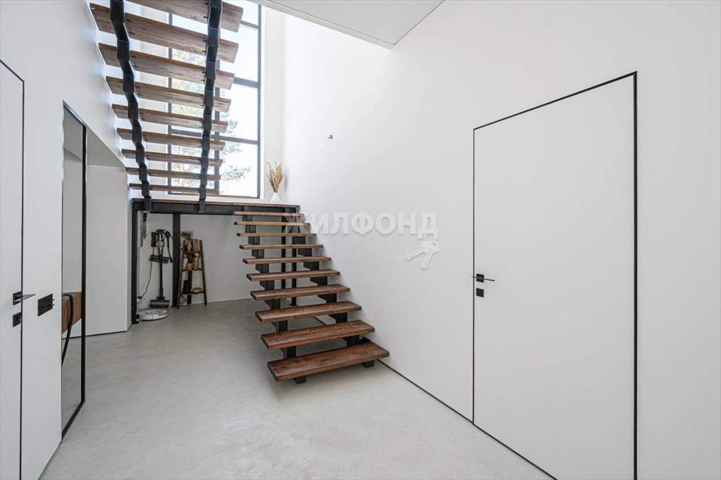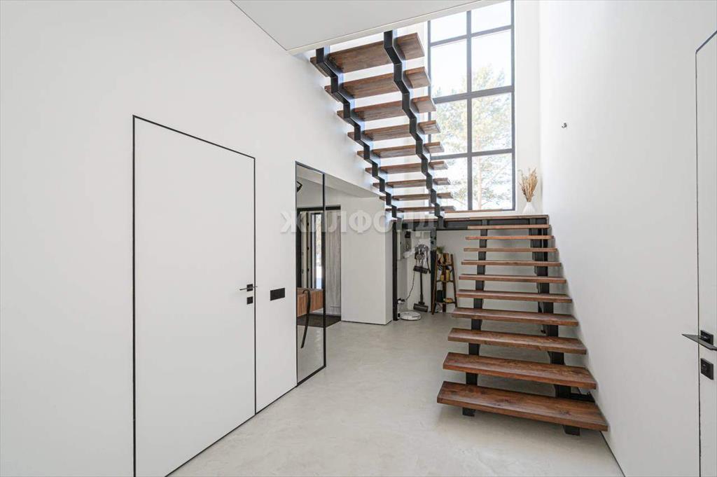 ПЕРВЫЙ ЭТАЖ: просторная КУХНЯ-ГОСТИНАЯ 41,5 м2 с двумя панорамными окнами и выходом во двор, поделена на обеденную зону и зону отдыха. , СПАЛЬНЯ 15,1 м2. , санузел с большой душевой 6,8 м2. , котельная (она же постирочная-хозяйственная комната) . Парящая лесница на верхний этаж со вторым светом.