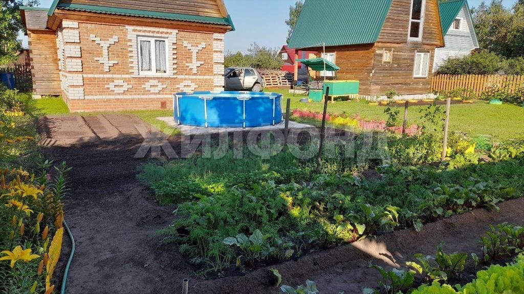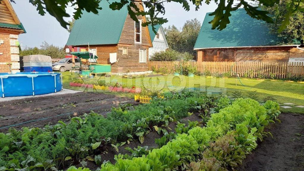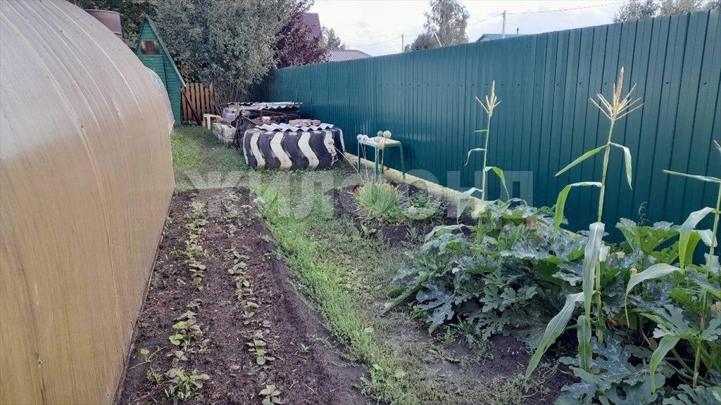 В огороде посажены сортовая малина красная, черная, смородина красная, белая, черная, крыжовник, слива, вишня, жимолость, садовая клубника и земляника, дуб, сирень, ирга, многолетние цветы, 3 маленькие ёлочки, имеется газон для отдыха, дорожки выложены тротуарной плиткой 40*40. |