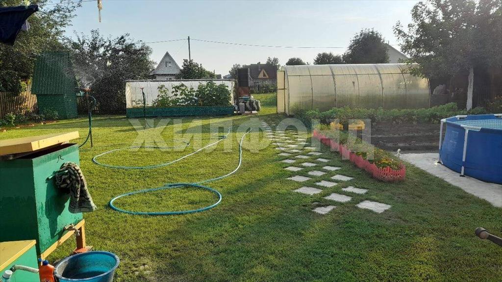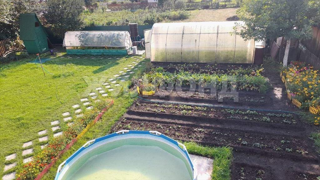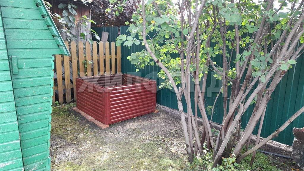 На участке есть теплица помидорная размером 3 на 6, теплица огуречная размером 1,5 на 6, бочка 200л. для автоматического полива, летний туалет, хоз. блок, дровеник, компостный бак для травы, площадка под большой бассейн.