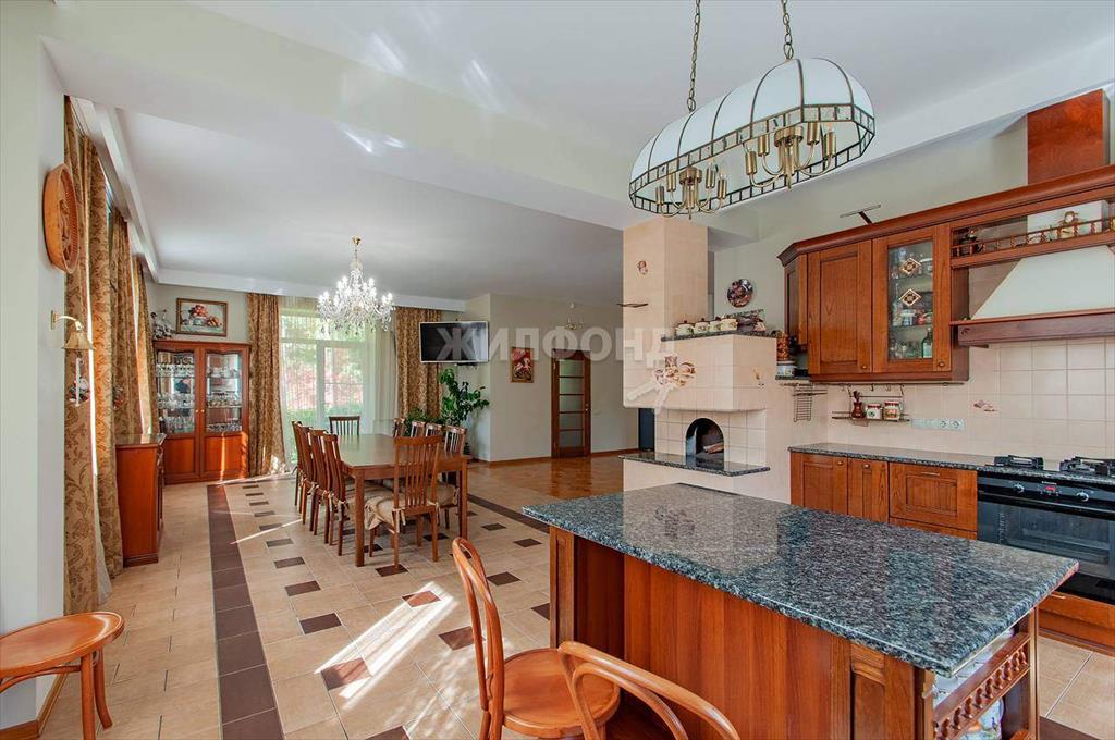 На 1 этаже 132 м2 расположена просторная кухня с обеденной зоной и гостиная объединенные в единое пространство с выходом на балкон и видом на ухоженный участок и лес, также на этаже расположен кабинет и с.у.