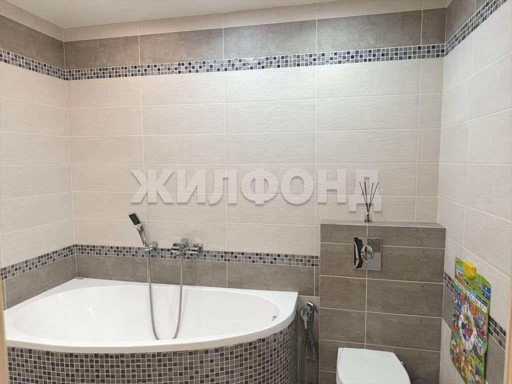 В прихожей, кухне и санузле теплый пол. Во всем доме натяжные потолки. Санузел облицован кафельной плиткой.