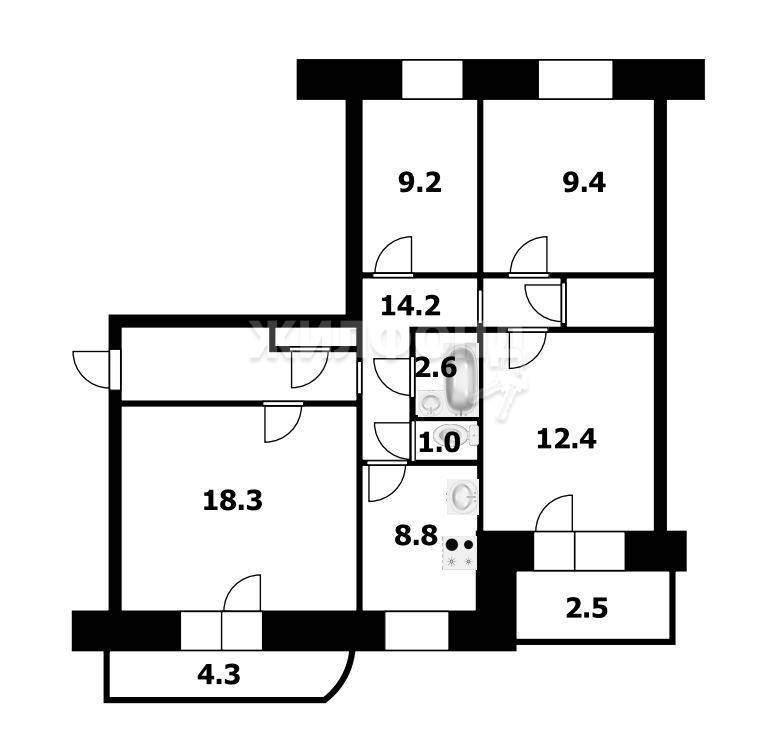 | Четырехкомнатная квартира по ул. В.Высоцкого, 13 в Новосибирске |