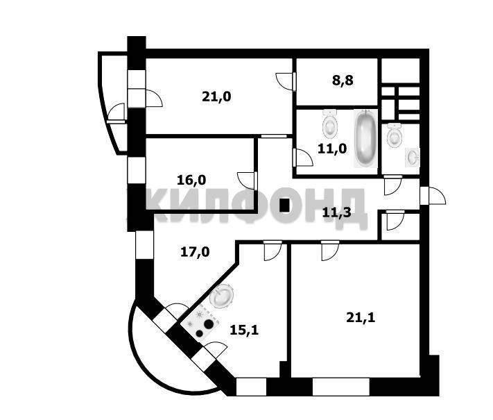 | Четырехкомнатная квартира по ул. Кавалерийская, 2 в Новосибирске |