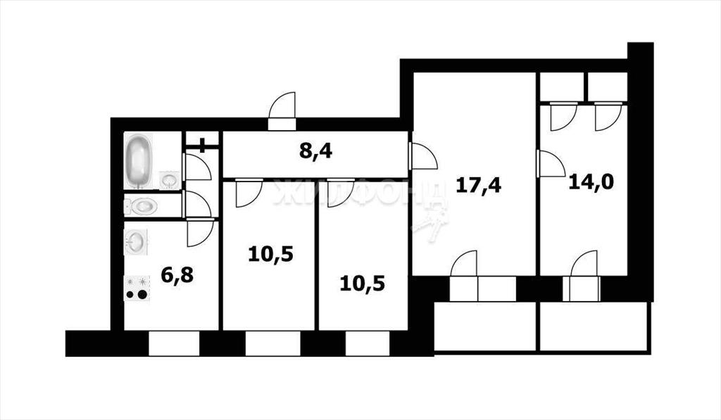 Четырехкомнатная квартира 71,80 м2 по ул. Кропоткина 127 за 6950000 руб. |
