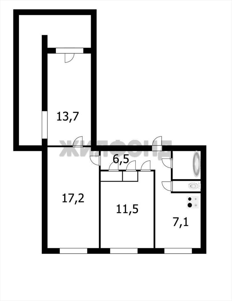 | Трехкомнатная квартира по ул. Красноярская, 36 в Новосибирске |
