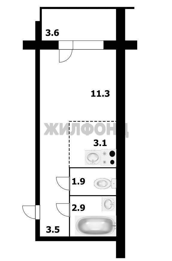 | 1 комн. квартира по ул. Сибиряков-Гвардейцев. Общей площадью: 22.50 кв.м.
