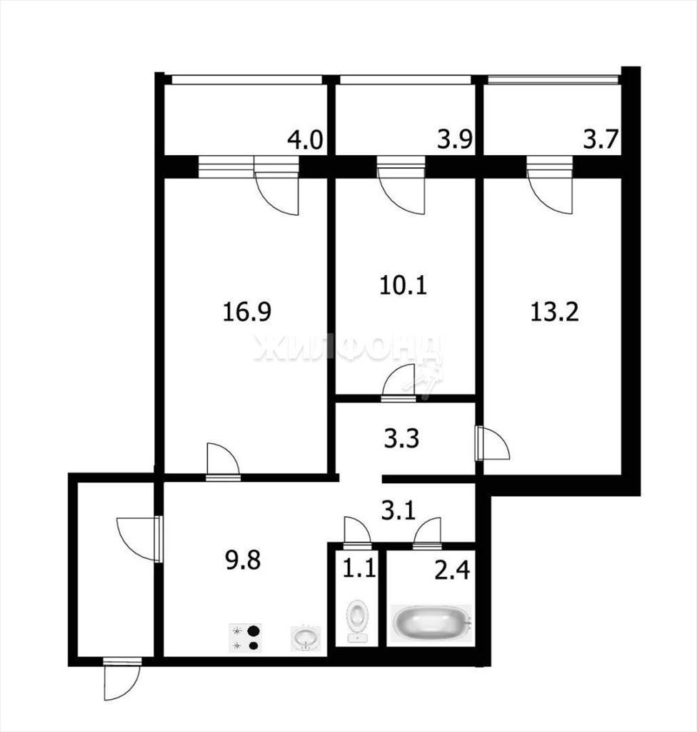 Трехкомнатная квартира 59,90 м2 по ул. Кропоткина 127 за 6000000 руб. |