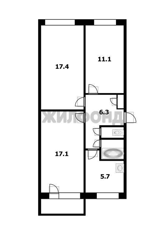Трехкомнатная квартира 61,10 м2 по ул. Шлюзовая 2 за 4600000 руб. |