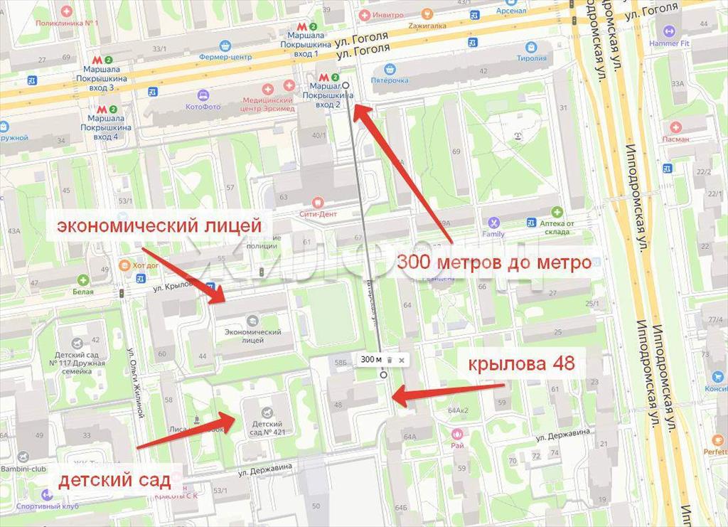 Однокомнатная квартира 45,50 м2 по ул. Крылова 48 за 8299000 руб. |