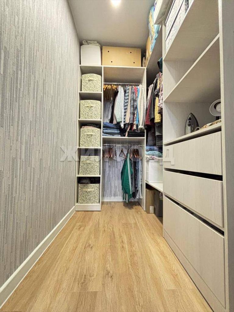 Вместительная гардеробная с системой хранения.